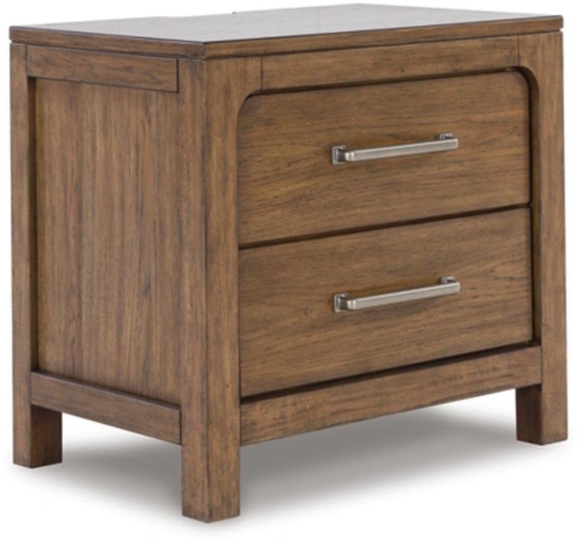 Even with its poise, the nightstand remains practical. Included USB ports keep you charged up for late-night scrolling, defining your bedroom with reliable function and style.