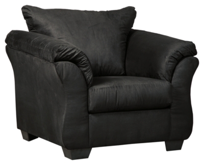 Talk about fine lines and great curves. That’s the beauty of this standout chair—made to suit your appreciation for simplicity and love of contemporary style. A striking flared frame, comfy pillow top armrests and an ultra-soft upholstery that holds up to everyday living complete this fashion statement.