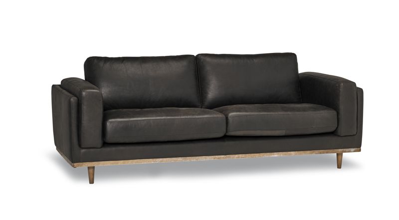 In stock leather available in Sedona Charcoal color.
